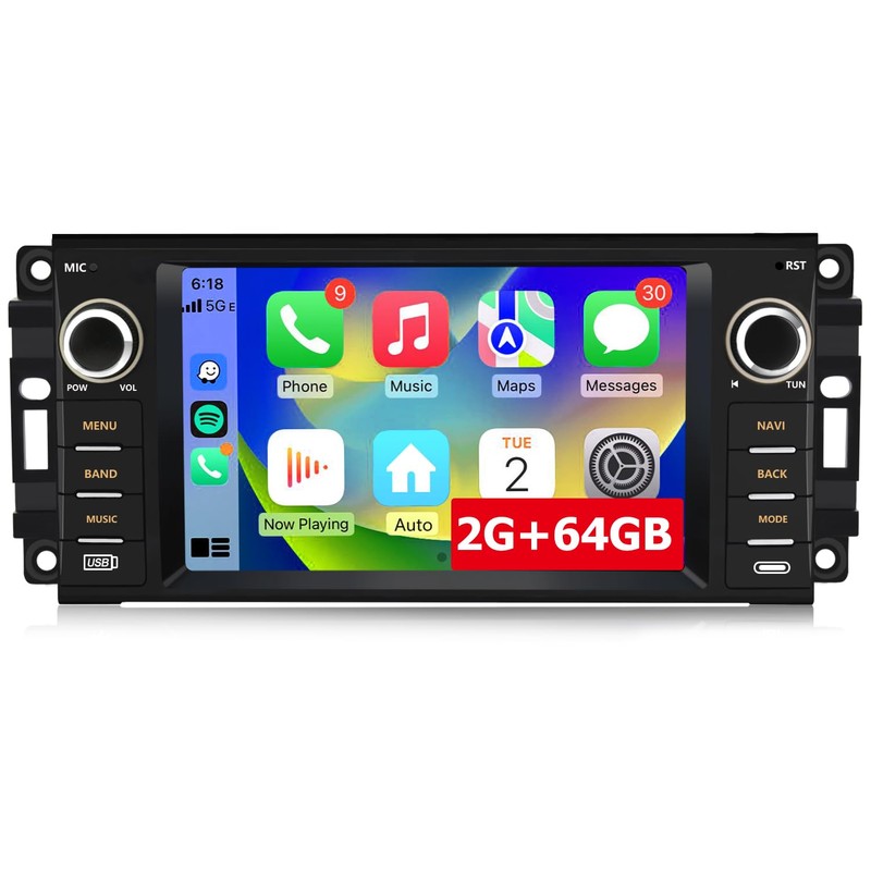 Car Stereo [2GB+64GB] for Jeep Wrangler JK Compass Patriot/Chrysler/Dodge RAM...