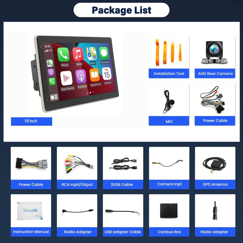 - 🚘【More Functions】- Support backup camera input/ driving record playback (not included), language switching, dual USB adapter input, USB fast charging, video playback, time setting, interface themes, wallpaper switching, etc.