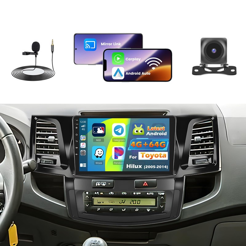 Car Stereo Radio for Toyota Hilux 2005-2014 with Wireless Carplay Android Auto, 4+64G 9 inch HD IPS Thouch Screen Bluetooth Radio with Bluetooth5.0 32EQ 1280 * 720P GPS WiFi + AHD Backup Camera
