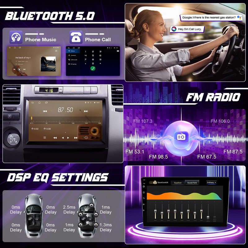 - 【9 inch HD Touchscreen & EQ Setting】This carplay for Toyota Prius apple car play radio has a high-definition 9-inch capacitive touch screen with the resolution of 1280*720, bringing you a wonderful visual experience. In addition, the unique UI design and rich colors redefine the interaction interface and simplify the operation process. Built-in EQ setting, 2004-2009 Toyota Prius radio supports various mode of sound effects you love