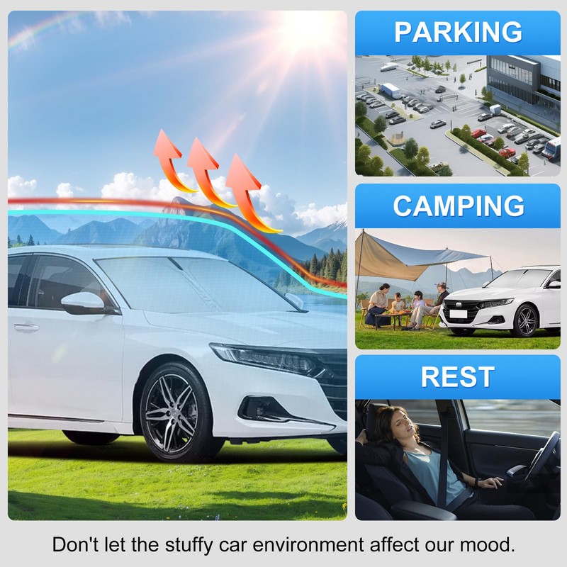 - 【Durability You Can Trust】Crafted from premium 240T polyester,our windshield sunshade is designed to last and resist wear over time,block 99.79% of UVA & 99.95% of UVB And SPF100 & UPF 50+.Keep your car cooler and prevents leather seats from cracking and fading.Great heat shield interior accessories for your car sun visor for car windshield