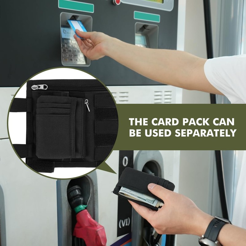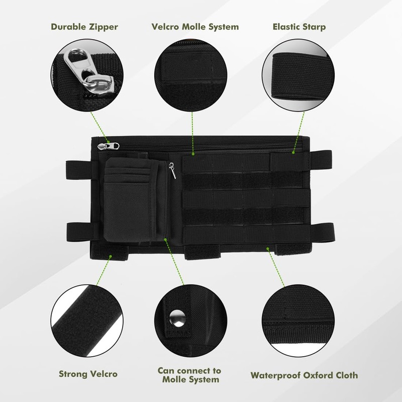 - 【Universal Tactical Bag】Our car visor organizer has multiple pockets that save space, including 1 zipped big compartment, 3 card pocket, 4 Elastic Bands. It's perfect for storing your phone, sunglasses, wires, documents, cards, pens, charger cord, earphones, CDs, and more.