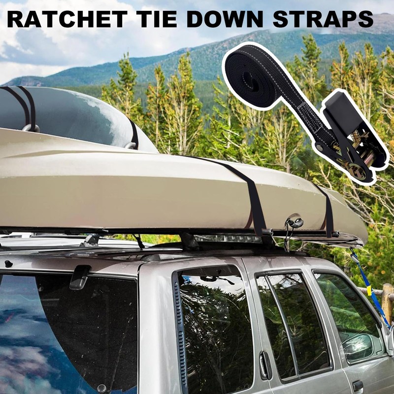 - Widely Applicable: Use these ratchet car tie down straps to securely fasten trailers loaded with various items, such as motorbikes, cars, surfboards, and kayaks, ensuring quick, safe, and easy transport.