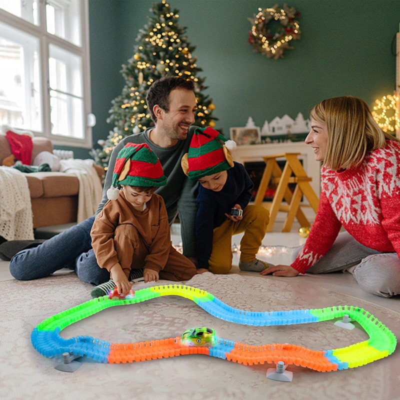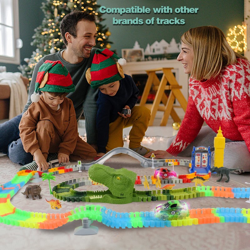Car Track with 2 LED Race Cars Toys, 240 Pieces Flexible Variable Track Set, Children's Highway, Glow in The Dark for Kids 3 4 5 6 7 8
