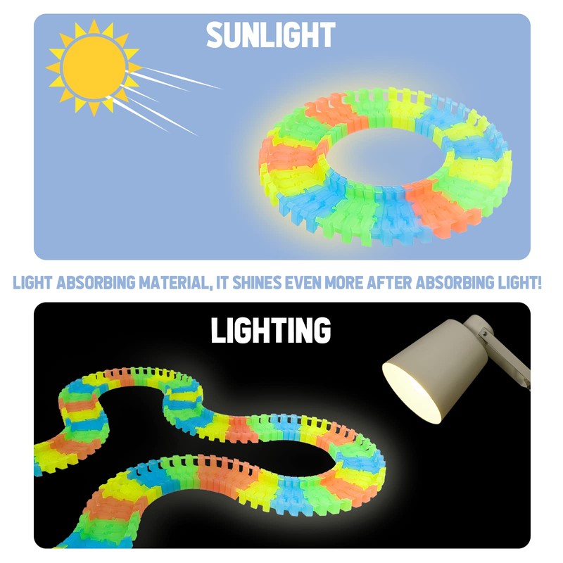 - ★ You can play at night. The track was made of transparent plastic when the LED car was driving at night, the flash reflected on the route, the track becomes very attractive.