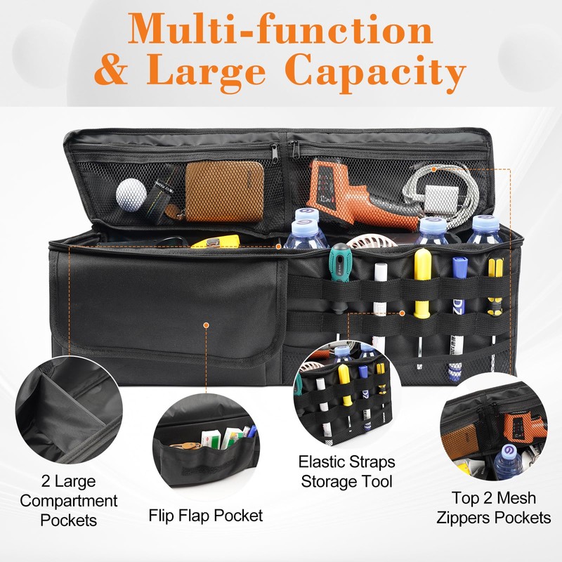 • Superior Quality: Our car trunk organizer is made of high-density 600D Oxford cloth material with high quality double-ended zip. The storage bag is not only strong and durable, waterproof and scratch-resistant, but also easy to clean.