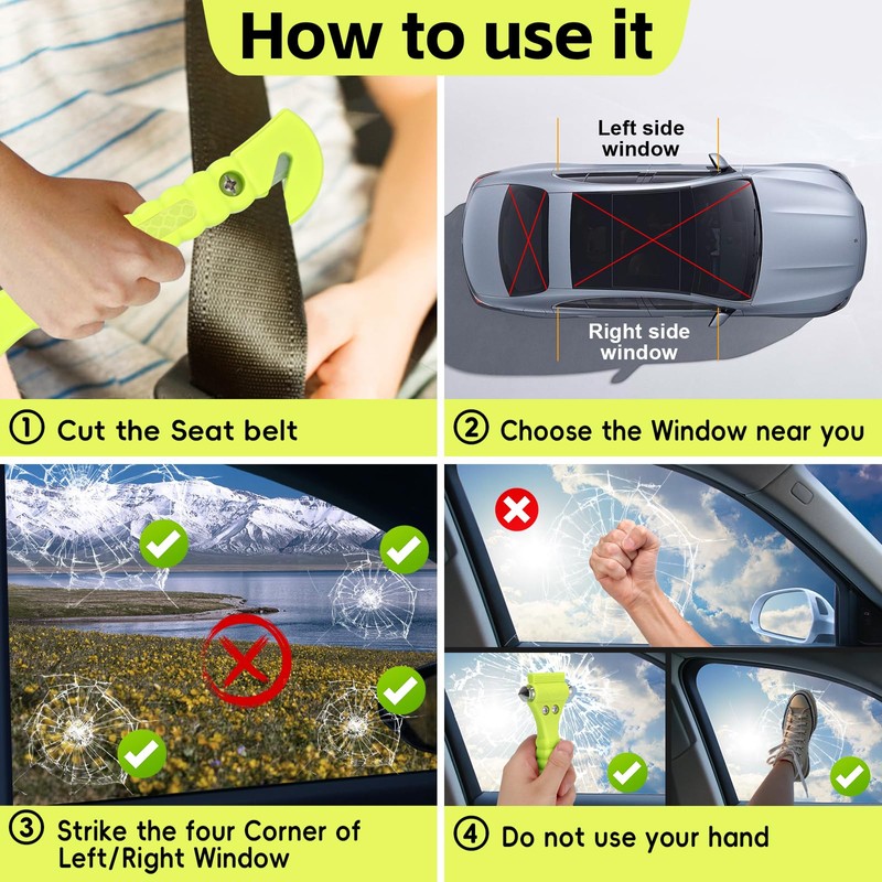 - Special gift - This bright colours seatbelt cutter and glass breaker is very suitable for giving to family, friends and other important members. Despite the emergency car window breaker looking very common, it represents your concern about their driving safety. Although we don't want anyone to use it, it can save lives at a critical time