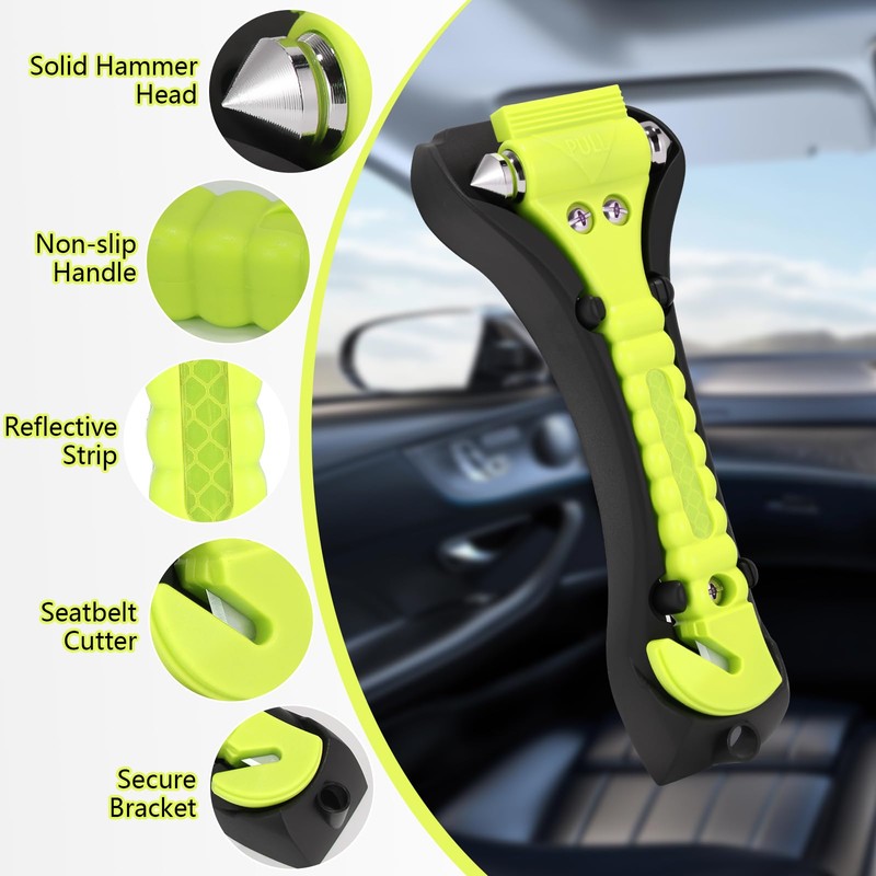 - Superb craftsmanship -This Car Safety Hammer tool is made of all solid high-grade tungsten steel and ABS plastic.The front is also designed with a reflective sticker to ensure you can easily find it at night