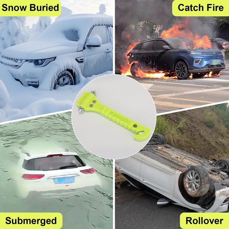 - Full functional Car Escape Tool - Equipped with hardened solid tungsten steel, while the other end is a stainless steel seat belt cutter used for cutting seat belts, which allows you to leave the vehicle quickly in an emergency