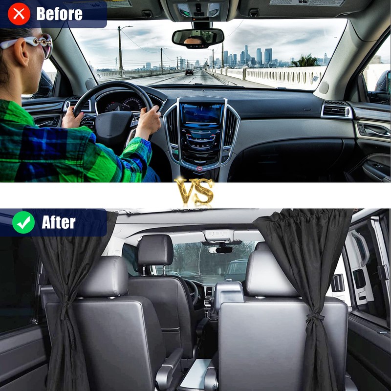 - [Multi-usage] Car Privacy Window Cover can be used as a partition, front or rear curtain as you want. [For partitions] When changing clothes, taking a nap, or breastfeeding. [For front sunshade] For summer sunshade or anti-theft. [For rear] You can use it when you take a nap on the back seat or when you change clothes.