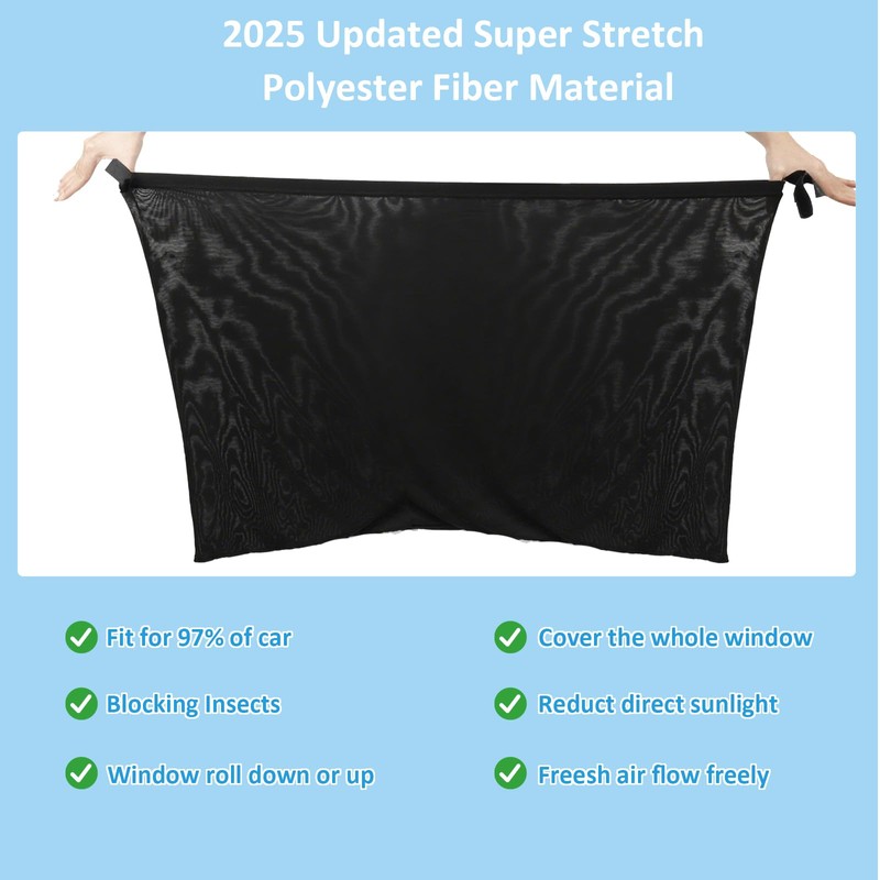 ✔Breathable Design: the car window screen engineered with a specialized mesh structure, it allows fresh air to circulate freely, maintaining proper ventilation without sacrificing protection against insects and sunlight.