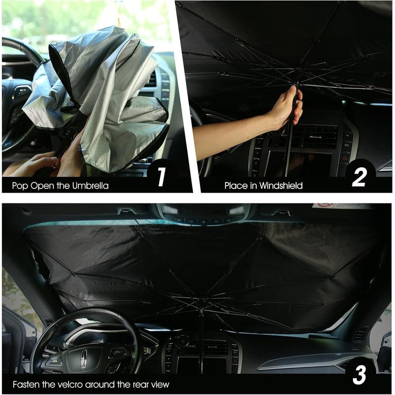 Car Windscreen Sunshade - Foldable Parasol, 360° Rotatable Flexible Rod, UV Blocking Protection