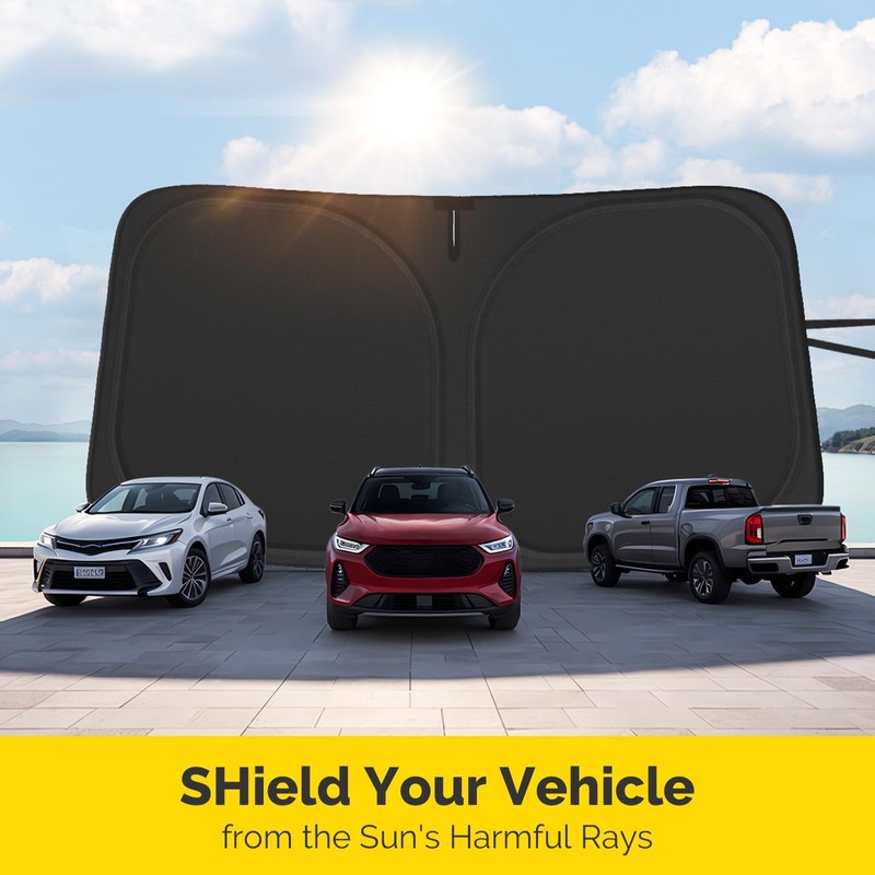 • 【Effective Interior Protection】The automotive windshield sunshades for tundra adopt a double-layer design, the silver layer in the car sun shade reflects sunlight falling on the windshield, and the black layer reduces the hot temperature inside the cabin. The car windshield cover sun shade prevents fading of upholstery and dashboards from UV rays, and reduces strain on the air conditioning system.