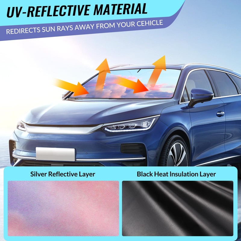 - 【SIZE】Car windshield sun shade is L 55" x 32" W. Fits perfectly to most standard cars, Sedans, Mid-Size SUVs and Trucks with regular-sized windshields.