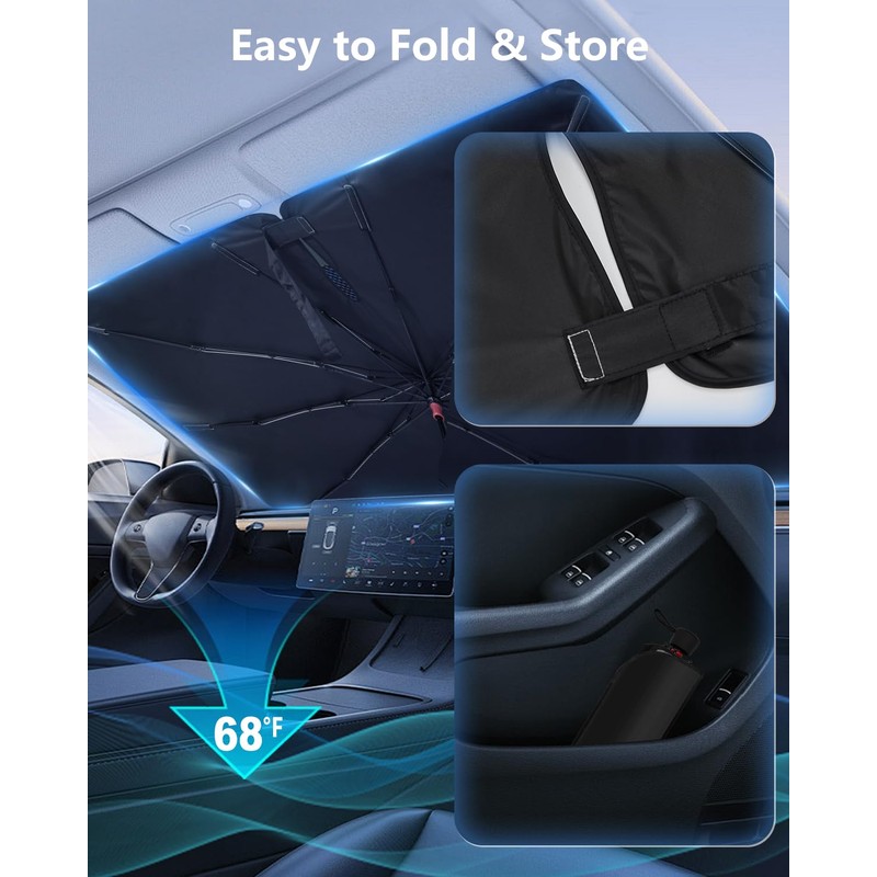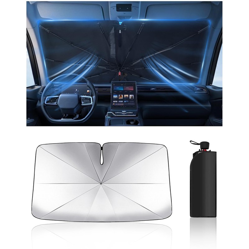 - 【Easy to Use and Store】 Simply push and open it like an umbrella to shield yourself from intense sunlight. When folded, it fits into the included storage bag, making it compact and convenient for any storage space in your vehicle.