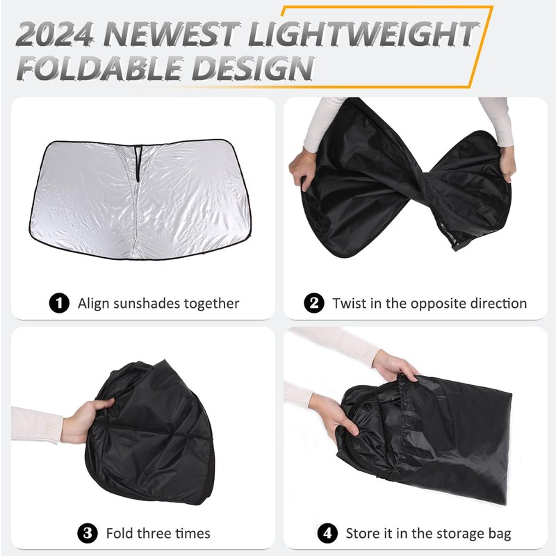 - 【EASY TO SETUP AND CARRY 】 - The foldable shades quickly and easily fold away into the pouch provided for convenient placement inside your vehicle.