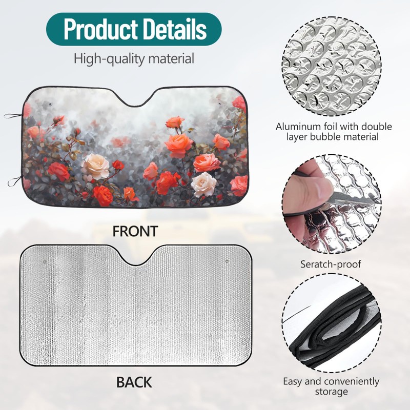 Car Windshield Sunshade Rose Garden Pattern with UV Block Car Front Window Heat Insulation Protection Foldable Sun Shade for Cars Trucks SUVs