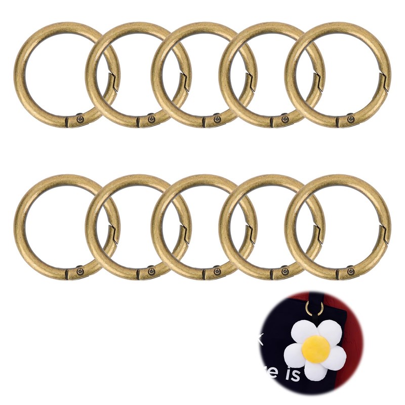Carabiner Hook, Round, 27 mm, Pack of 10 for Handbags, Key Rings, Clips, Buckle with Spring, Steel, Bronze, Lobster Clasp,