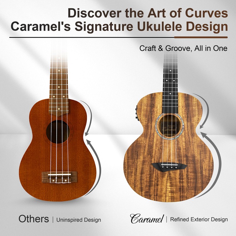 - ♪ UNMATCHED UKULELE - 3 bands EQ built in tuner with LCD color display,ready this one-of-a-kind acoustic-electric for natural-sounding sound reproduction into an amp, PA, or recording medium.! Adjustable Truss Rod inside the neck (wrench included) ,so players can adjust the action according to their needs.Rare ukuleles have such feature.Aquila Strings to create a Full Sound.Caramel ukalalee sounds almost like a pricey professional Ukulele.