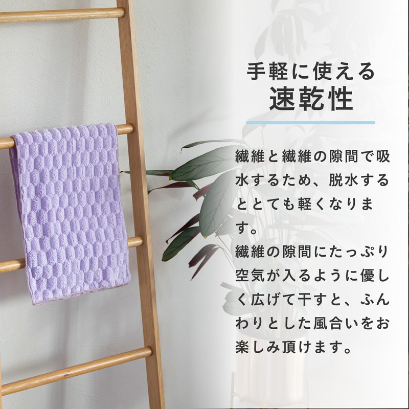 - Just touch the water droplets from your body after a bath. Towel dry with a gentle touch without scrubbing Easy to wash since it dries easily even during the rainy season or in the middle of winter