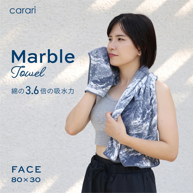 Carari Face Towel, 3.6 Times Absorbent Microfiber, Marble Gray, Quick Absorption in Fiber Gaps, Quick Drying, Jacquard Method 11.8 x 31.5 inches (30 x 80 cm), CB Japan Calarimable