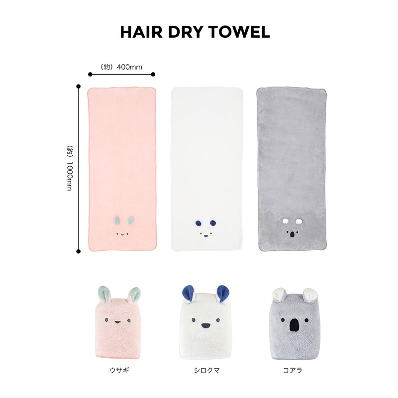 Carari Hair Drying Towel, Absorbent, 3x Microfiber, Koala, Quick Absorption in Gaps of Fiber, Quick Drying, Marshmallow Texture, Fluffy and Mochi, 15.7 x 39.4 inches (40 x 100 cm), CBJAPAN KALARIZUI