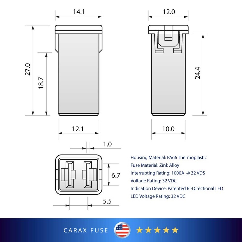 - OEM INDUSTRY STANDARD: Color coding. Size complies with OEM standard SAEJ2741, UL, EU RoHS, and REACH. Bright diode inside the fuse. Suitable for Car, Auto, Motorcycle, Truck, SUV, Boat, Marine, RV.