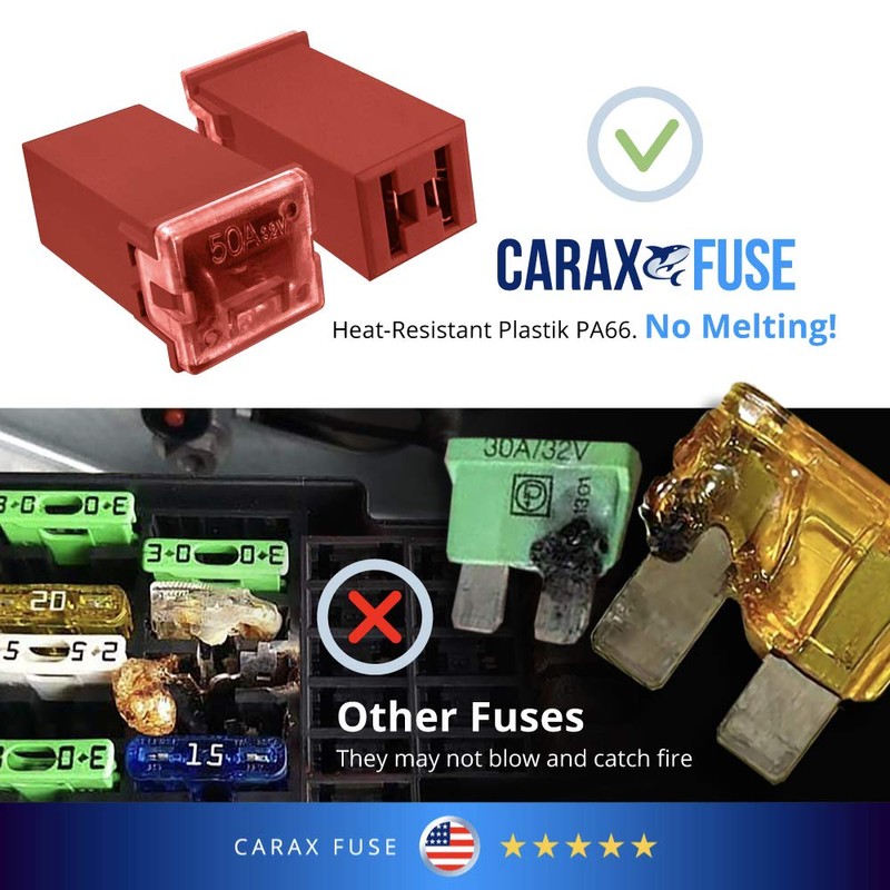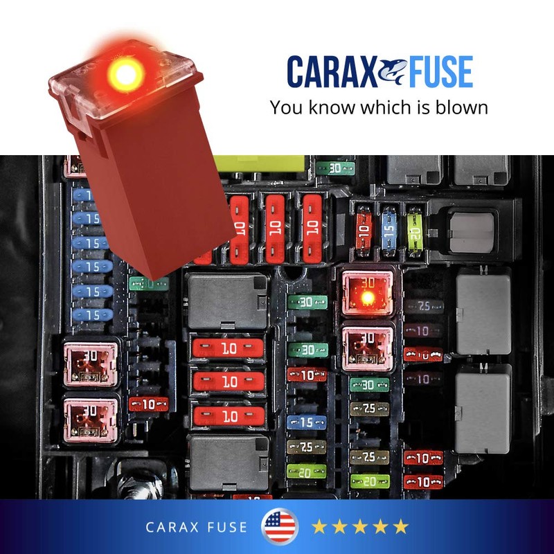 CARAX Glow Fuse – Premium Fuse Cartridge Tall Standard Fuse – 50A Kit 1 pcs. – Glow When Blown LED Automotive Fuse – Smart Auto Glow Fuse Easy Identification – 1 pcs.