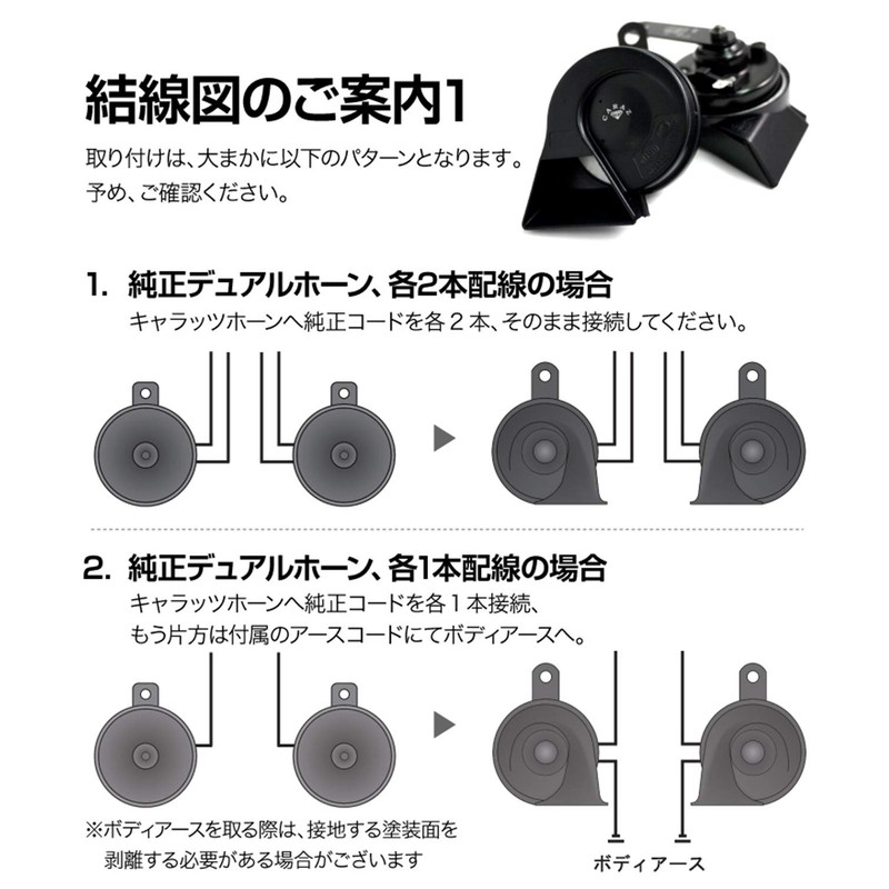 - Only the horn body for DC 12V. This product is useful for those who can make wiring processes