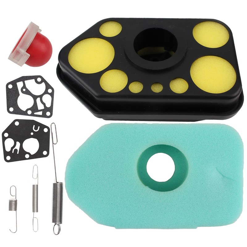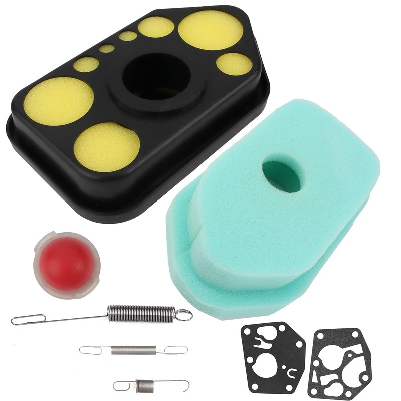- Package includes: 1 air filter cover assembly, 1 air filter, 1 oil bubble, 2 diaphragm, 3 spring. You will get as pictured.