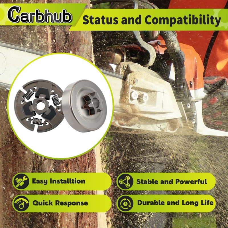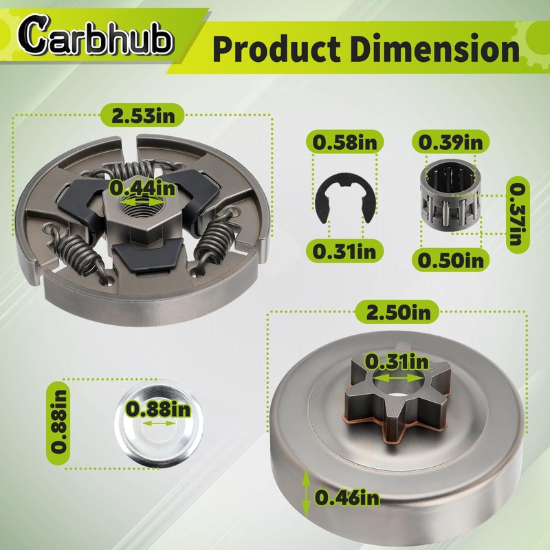 Carbhub Sprocket Clutch 3/8" for Stihl 017 018 021 023 025 MS170 MS180 MS210 MS230 MS250 Chainsaw with Washer E-Clip Kit Replace 1123 640 2003, 1123 640 2073