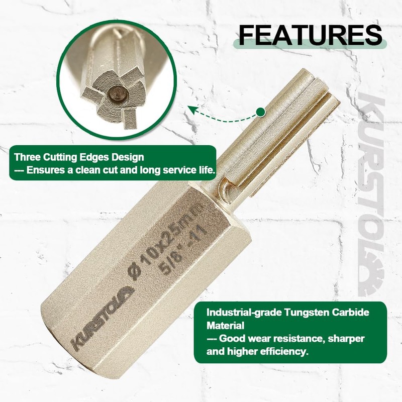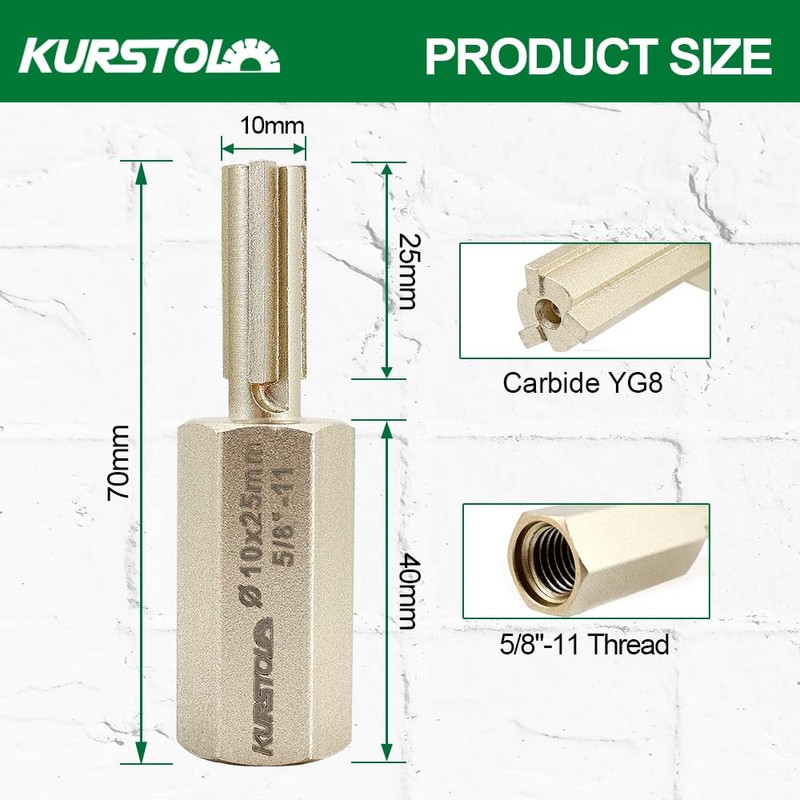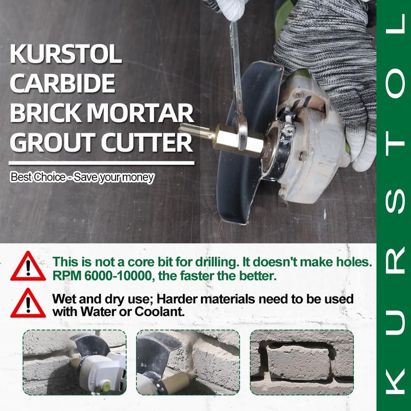 Carbide Brick Mortar Grout Cutter - KURSTOL Mortar Raking Bit 3/8 x 1 Inch with 5/8”-11 Thread for Mortar Masonry Brick Removal