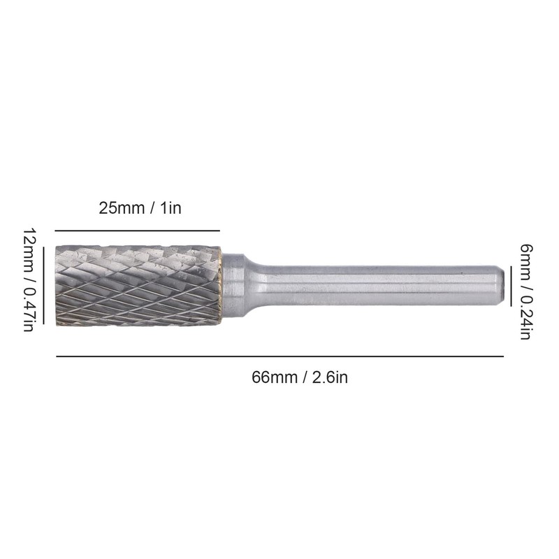 Carbide Burr, Cylinder Carbide Burr Rotary Cutter Cylinder Cutter with 6 mm Shank, Double Cut Carbide Burr End Mill Tungsten Steel File Bit for Chamfering and Deburring