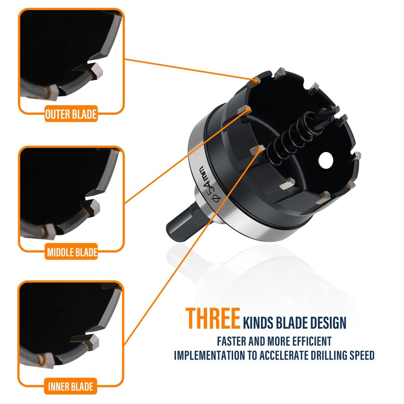- 【HIGH PRECISION AND EASY TO USE】TCT Carbide Steel teeth for fast cutting of clean, round holes. Suitable for hand held electric drill, stand motor-driven drilling machine and mobile ribbon type magnetism drilling machine.