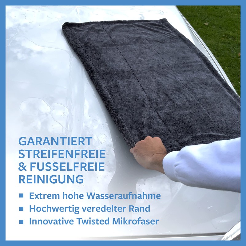 • ✅ 𝐔𝐋𝐓𝐑𝐀 𝐒𝐀𝐍𝐅𝐓 – Unser Autoputztuch ist kein Standard Handtuch oder Lappen zum sauber machen. Dank der speziellen und weichen Twisted Mikrofaserstruktur sind unsere Auto Mikrofasertücher ein Saugwunder. Lackschonend und perfekt für die Autowäsche und zum Lack Aufbereiten!