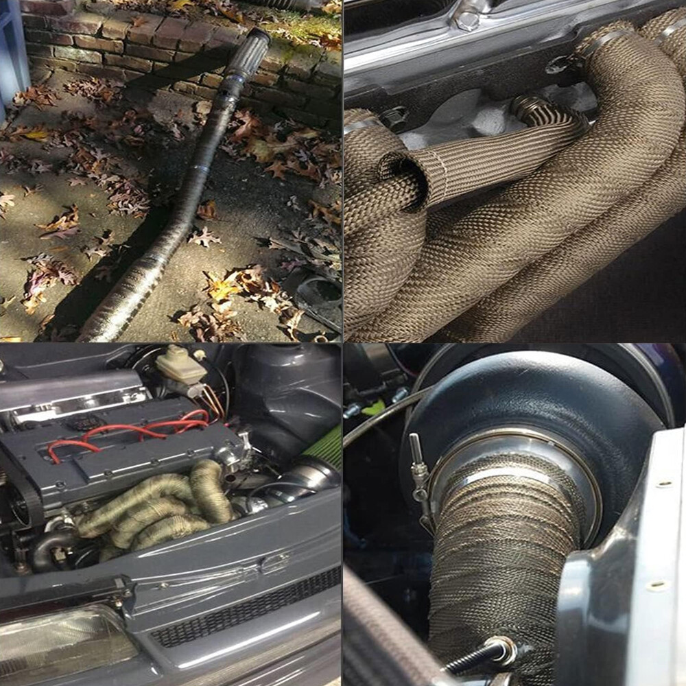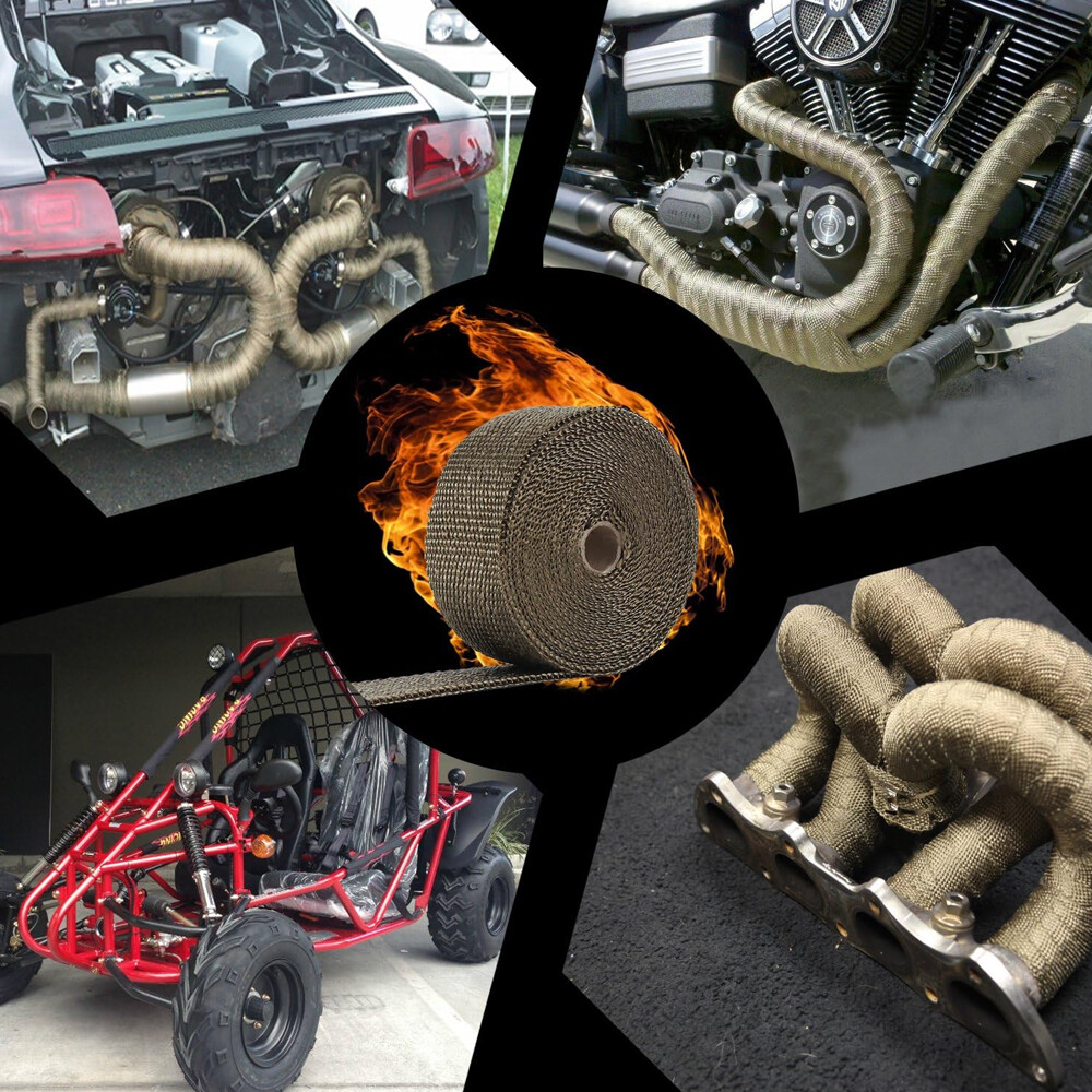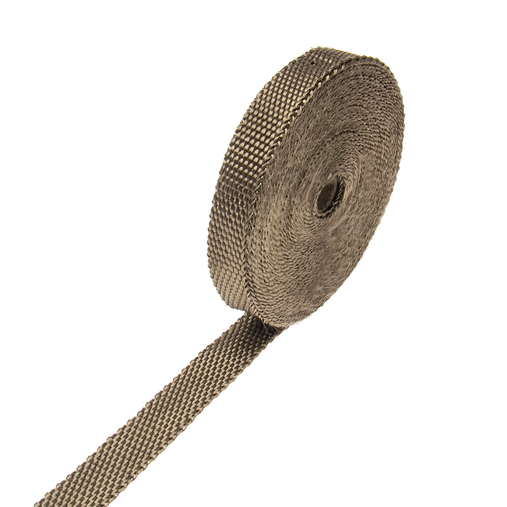 Titanium exhaust wrap is made from pulverized lava rock and stranded into a fiber material and is engineered to be stronger than typical wraps on the market today.