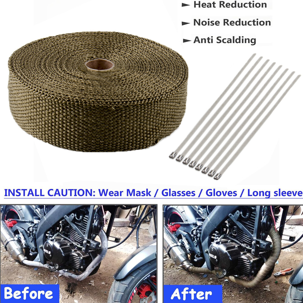 1" x50ft Roll Titanium Header Turbo Pipe Manifold Exhaust Heat Wrap Tape 20 Ties