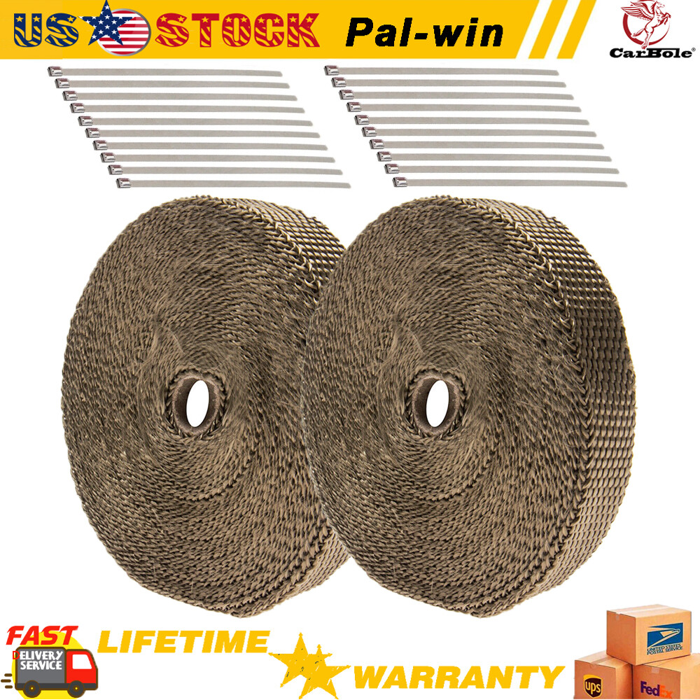 Carbole 1" x50ft Roll Titanium Header Turbo Pipe Manifold Exhaust Heat Wrap Tape 20 Ties