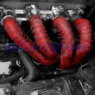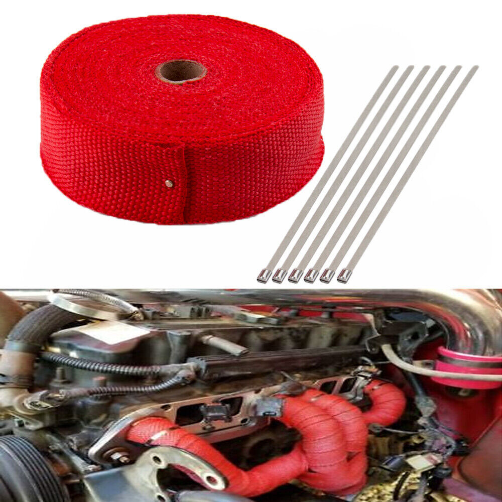 1Roll Exhaust Wrap Manifold Header Pipe Heat Wrap Tape+10 Ties Kit 2" x 50FT Red