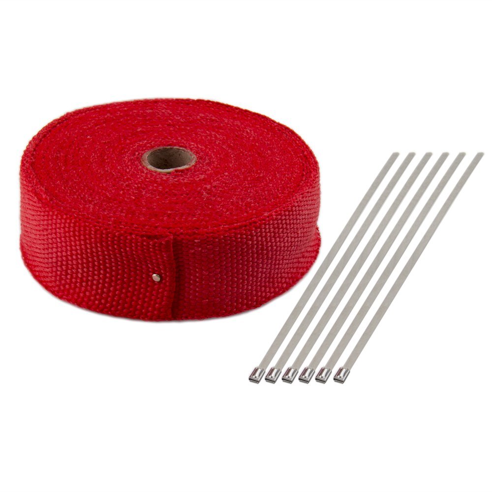 CARBOLE 1Roll Exhaust Wrap Manifold Header Pipe Heat Wrap Tape+10 Ties Kit 2" x 50FT Red