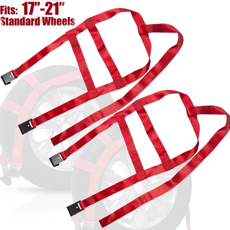 CarBole 2 Pack Car Basket Straps Tow Dolly Wheel Net Set Flat Hooks RED Heavy Duty NEW