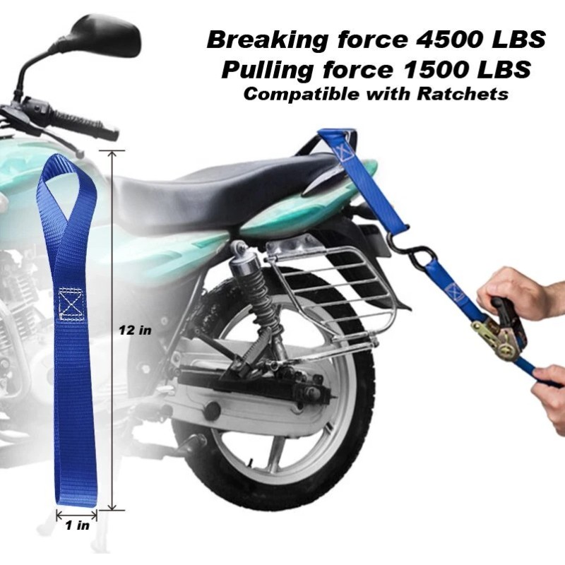 MULTIPLE USES: Use our tie down soft loop strap to secure ATV, UTV, motorcycles, scooters, dirt bikes, wheelchairs, lawn/garden equipment & work with any type of tie down you are using.