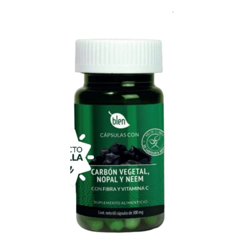 Capsulas con Carbón vegetal, nopal, neem, fibra y vitamina C BLEN