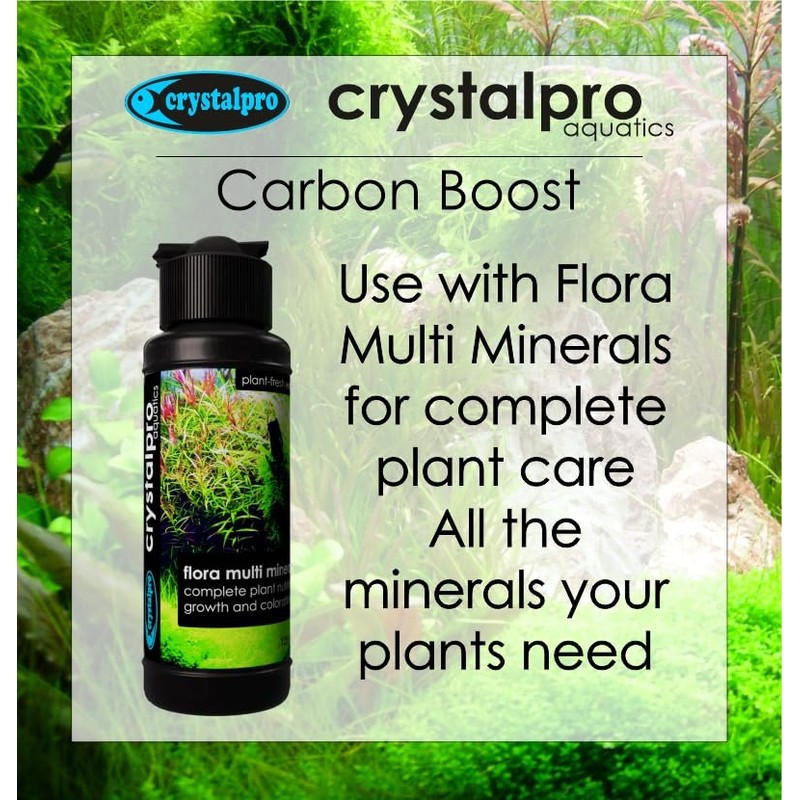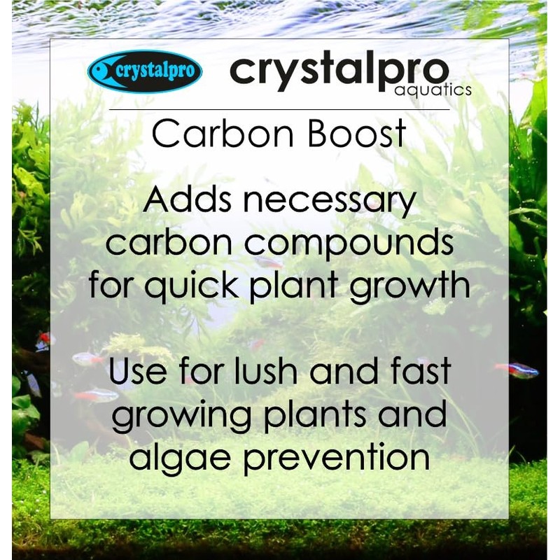 - Crystalpro Carbon Boost adds necessary carbon compounds to the water to accelerate plant growth. Adding extra free carbon to your water will result in your plants capturing it and using it to build their bodies and leaves thus growing healthily (provided necessary minerals are present in the water)