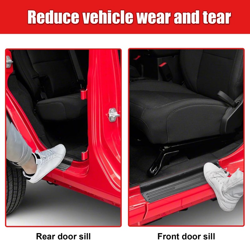 - 【Stainless Steel Material】:The door sill guards for Wrangler JL is made of stainless steel and is not prone to rust. It can prevent the door frame from being scratched, worn or kicked. Protect your beloved car from any weather conditions and make sure the body remains scratch-free and clean.