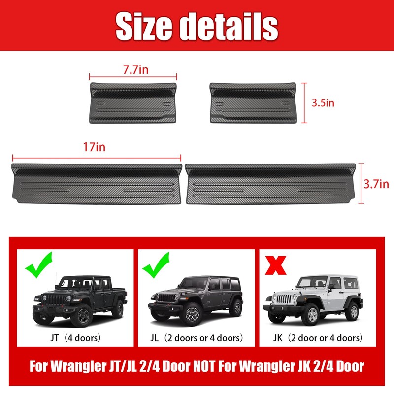 - 【After-Sales Service】:We promises the door sill guards for Wrangler JL 30 days for return or replacement without reason.If you have any problems or questions, please send a message to us and we will respond in time.