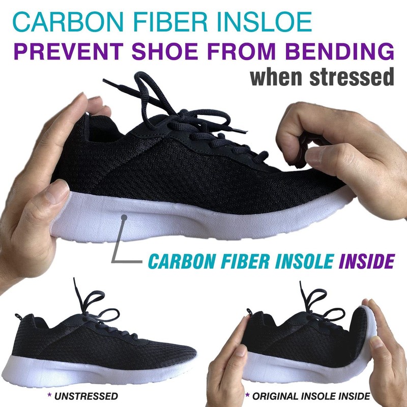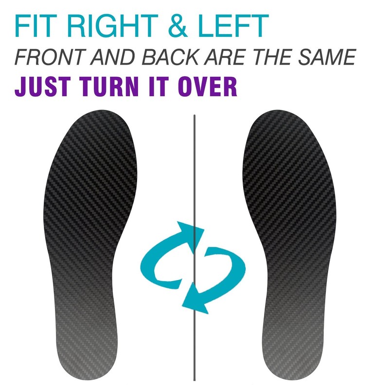 - Carbon fiber insert thickness:1.6mm , it is light and thin. They can be worn on your right or left foot. And the insert must be placed directly under the removable shoe insole or under orthotic.