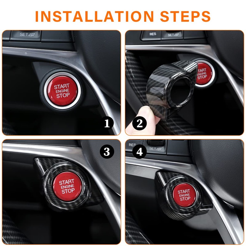 Carbon fiber Style For Giulia Stelvio 2017 2018 ABS Plastic Car Start Engine Stop Cover Trim Accessories