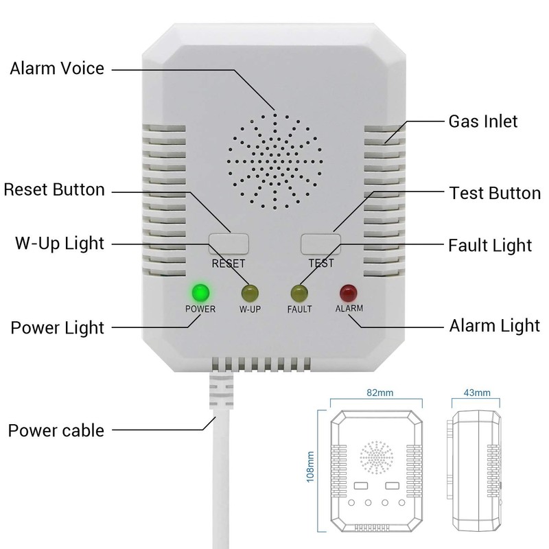 - 【Easy-to-Install and Durable】 The electrical plug in cord length is 100cm. Connect to power 110V, Plug-In design makes it super easy and convenient to install. The indicator light will light up and voice start sound. The propane detector will Warming Up for 3 minutes then the device can start working.