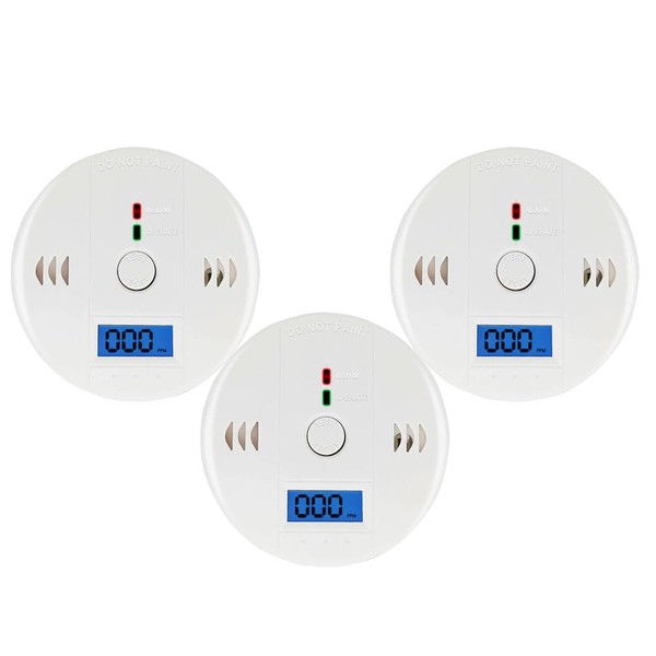 Carbon Monoxide Detector, Carbon Monoxide Alarm, CO Detector with LCD Digital Display, Battery Powered, Three Pack